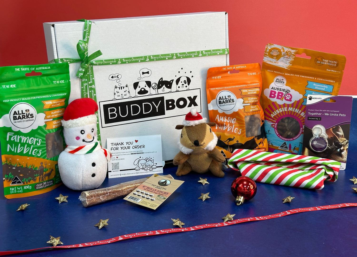 Surprise the pets you adore with a special GiftBox from BUDDYBOX. Whether it's your Furbaby’s birthday or another memorable occasion, our customized gift boxes are a heartfelt way to show your love. Choose from our ready-made standard or premium options, or let us help you curate the perfect gift box tailored to your pet’s preferences. Ideal for pet birthday parties, special events, or any cherished moment, these gift boxes are sure to delight your beloved companion. Each item in our GiftBox is carefully selected to ensure it meets the highest standards of quality and nutrition. From gourmet treats to luxurious accessories, we offer only the best for your babies.