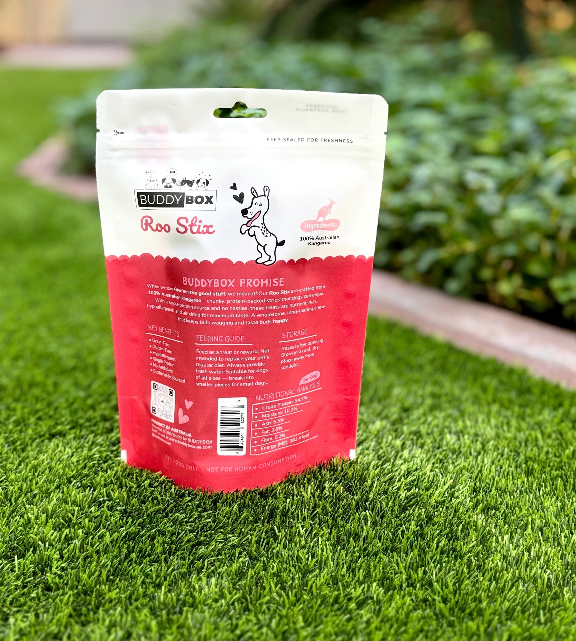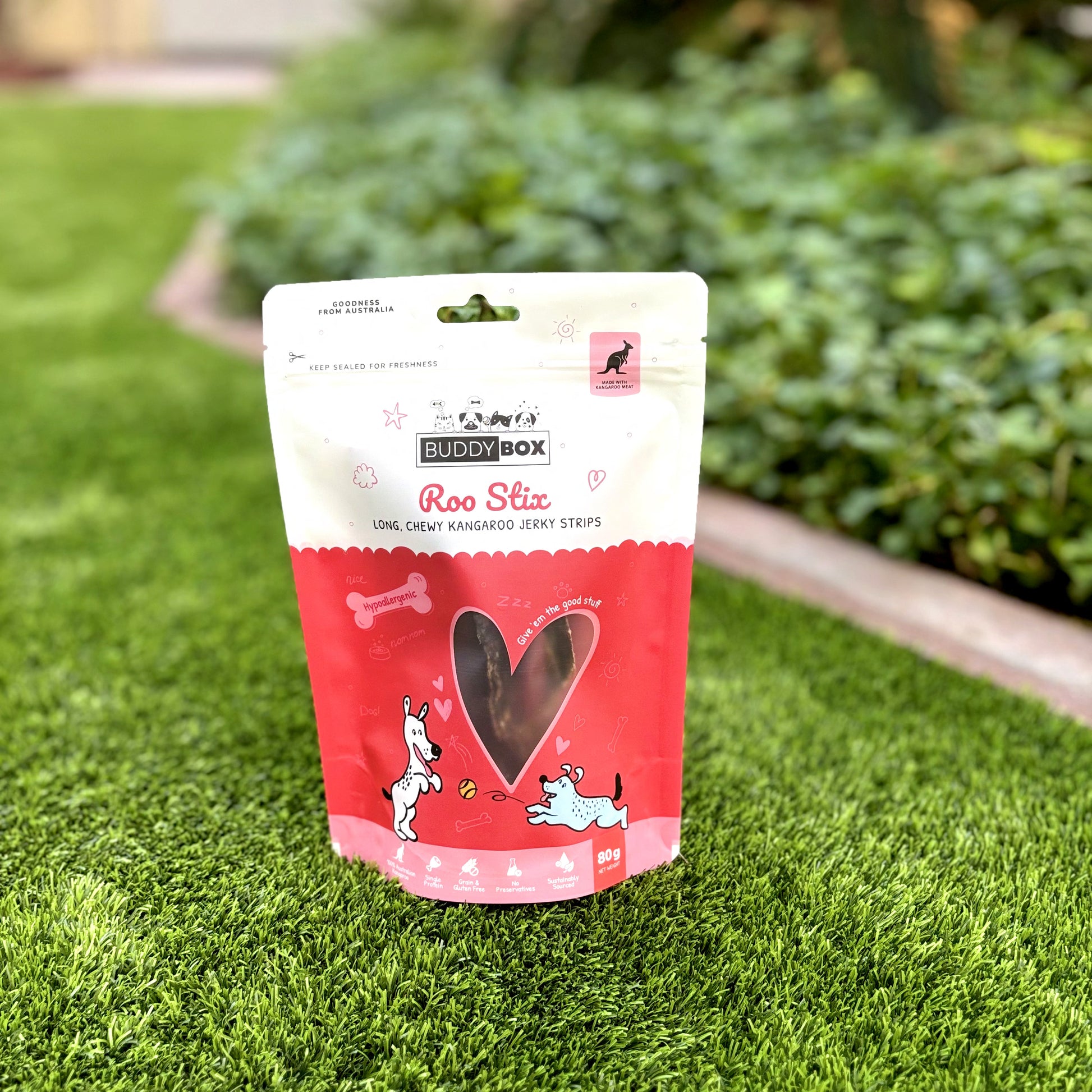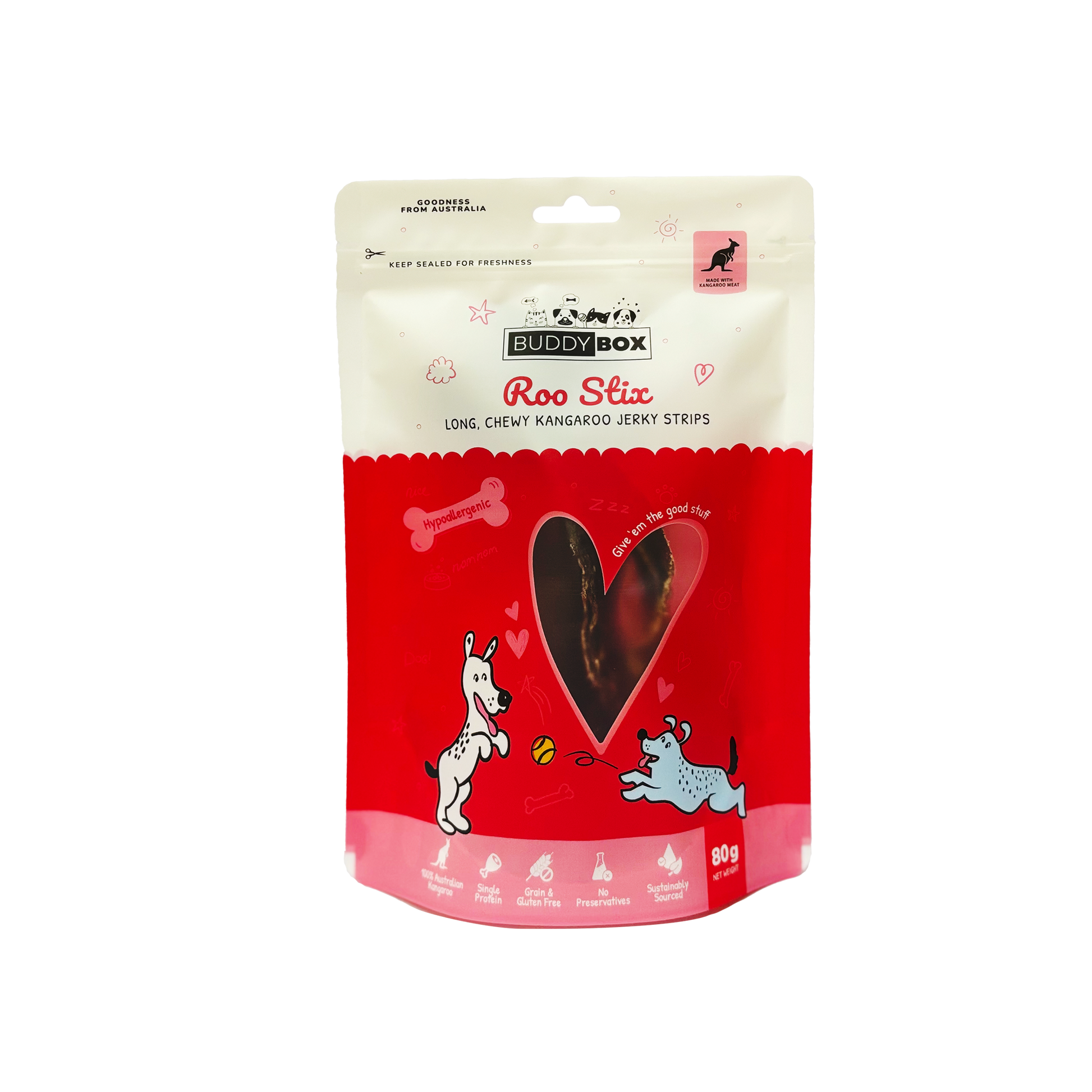 Give ’em the good stuff with our Roo Stix – 100% Australian kangaroo, air-dried to perfection. These lean, chewy strips are packed with protein, iron, and essential vitamins for a healthy, satisfying chew. Naturally hypoallergenic and made from a single protein source, they’re ideal for dogs with sensitivities. No fillers, no chemicals — just pure Aussie goodness.